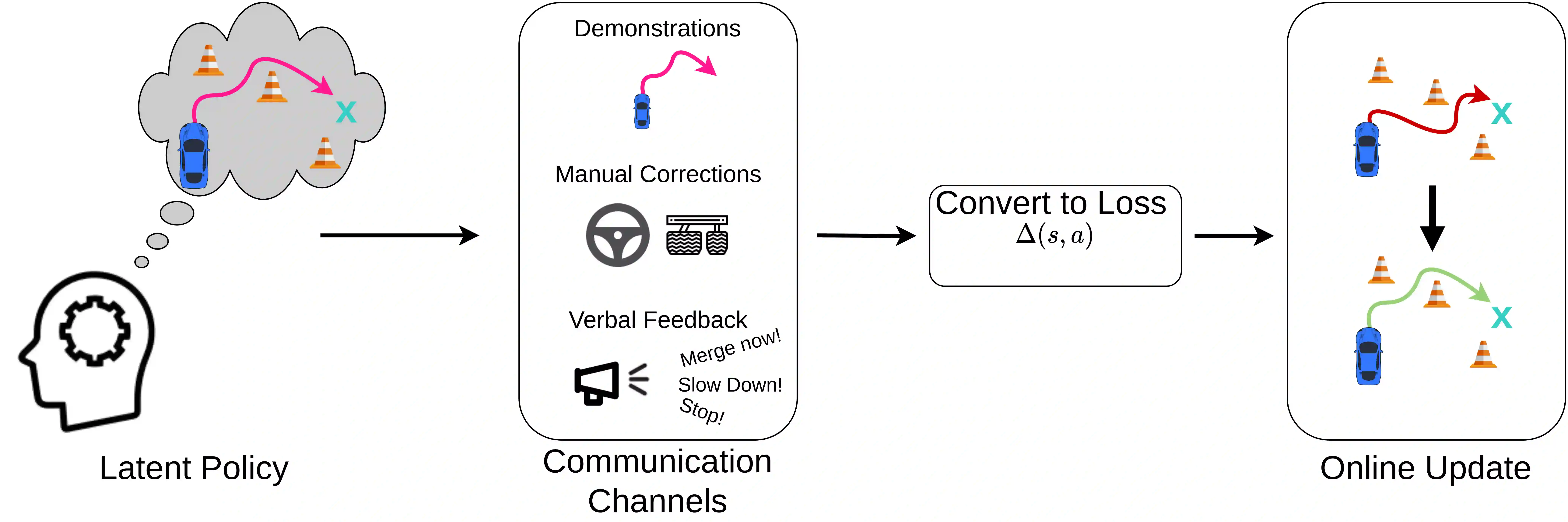 A key challenge in Imitation Learning (IL) is that optimal state actions demonstrations are difficult for the teacher to provide. For example in robotics, providing kinesthetic demonstrations on a robotic manipulator requires the teacher to control multiple degrees of freedom at once. The difficulty of requiring optimal state action demonstrations limits the space of problems where the teacher can provide quality feedback. As an alternative to state action demonstrations, the teacher can provide corrective feedback such as their preferences or rewards. Prior work has created algorithms designed to learn from specific types of noisy feedback, but across teachers and tasks different forms of feedback may be required. Instead we propose that in order to learn from a diversity of scenarios we need to learn from a variety of feedback. To learn from a variety of feedback we make the following insight: the teacher's cost function is latent and we can model a stream of feedback as a stream of loss functions. We then use any online learning algorithm to minimize the sum of these losses. With this insight we can learn from a diversity of feedback that is weakly correlated with the teacher's true cost function. We unify prior work into a general corrective feedback meta-algorithm and show that regardless of feedback we can obtain the same regret bounds. We demonstrate our approach by learning to perform a household navigation task on a robotic racecar platform. Our results show that our approach can learn quickly from a variety of noisy feedback.