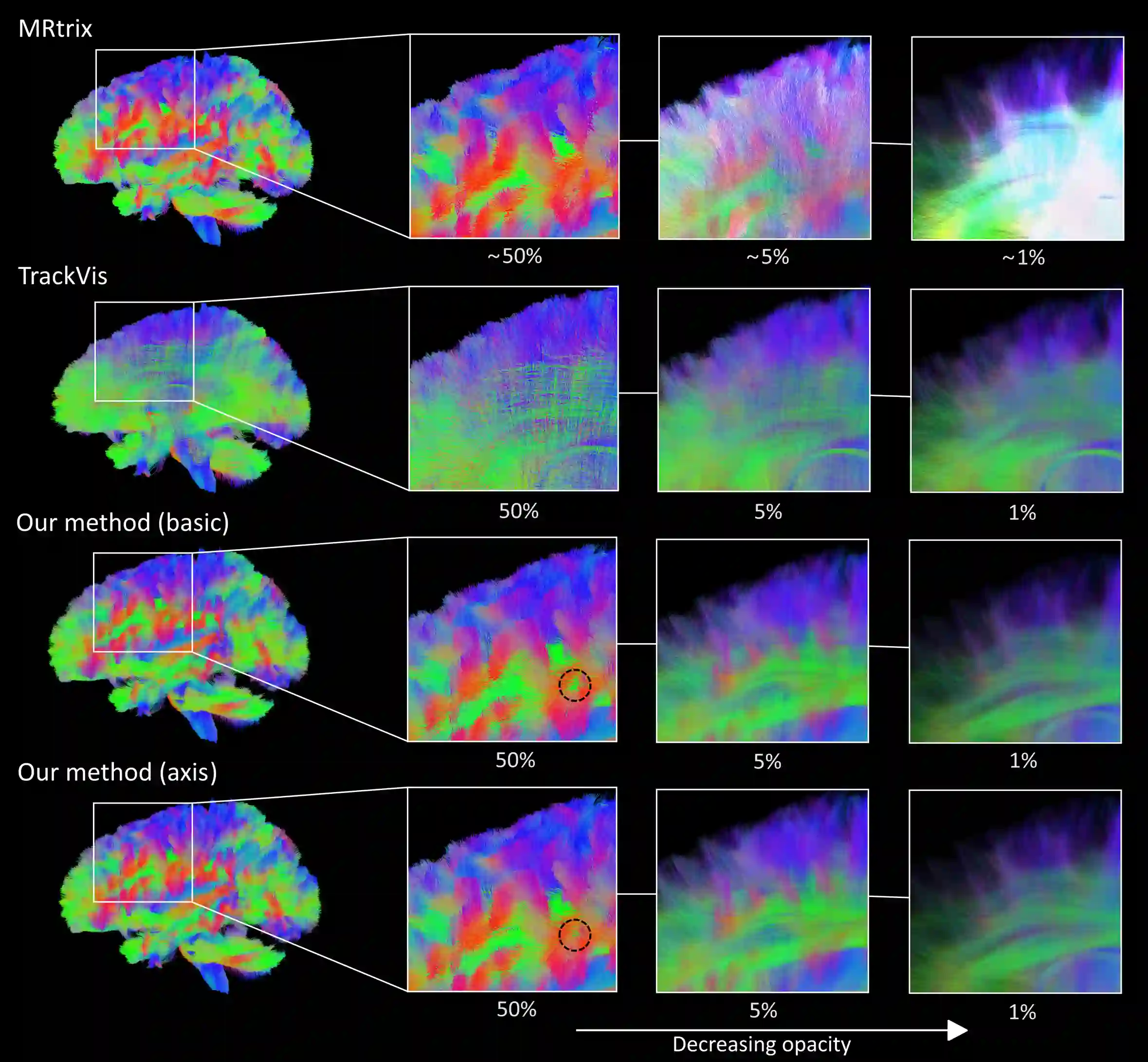 As tractography datasets continue to grow in size, there is a need for improved visualization methods that can capture structural patterns occurring in large tractography datasets. Transparency is an increasingly important aspect of finding these patterns in large datasets but is inaccessible to tractography due to performance limitations. In this paper, we propose a rendering method that achieves performant rendering of transparent streamlines, allowing for exploration of deeper brain structures interactively. The method achieves this through a novel approximate order-independent transparency method that utilizes voxelization and caching view-dependent line orders per voxel. We compare our transparency method with existing tractography visualization software in terms of performance and the ability to capture deeper structures in the dataset.