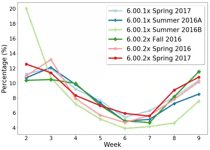 翻译:在学生行为预测模型中,学生行为预测模型支持学习设计的许多方面,包括教员反馈和及时干预。当持续(目标)课程的预测结果尚不清楚时,必须依靠以前提供的课程(源)历史数据中经过培训的模型。这种模型有可能转移,但往往预测不力。一个原因是不能充分捕捉两个课程共同的预测属性。我们提出了一个自动传输传输转移学习方法,以解决这个问题。它依靠直接向前的问题、不可知性和时间性组织点击流数据。对于每个学生来说,多门课程中每个时单位都表示一组具体的MOOC事件类型。它由两种基于自动编码器的替代转移方法组成:一种采用被动方法,使用移动式主元件分析,一种积极方法,增加一个相关匹配损失术语。我们调查了类似和不相近的MOOC的辍学预测可转移性,并与已知方法进行比较。结果显示模型可改进的可转移性,并表明这些方法能够自动学习显示MOOC的共同预测特征的特征。