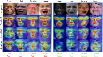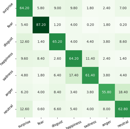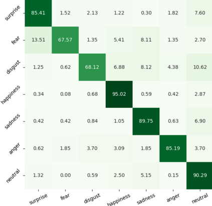 翻译:为了缓解这些问题,我们引导模型集中关注眼睛、嘴或眉眉等特定面部区域,我们认为这些面部表情是识别面部表达方式的决定性因素。我们建议采用原始归因损失(PAL)方法,通过鼓励其属性图与面部标志形成的热映射相对应,将模型的注意力引向最突出的面部区域。此外,我们引入了几个使模型具有更大自由度的频道战略。拟议方法独立于主干结构,在测试时不需要额外的语义信息。最后,实验结果显示,拟议的PAL方法优于RAF-DB和AfffectNet目前的最新方法。
