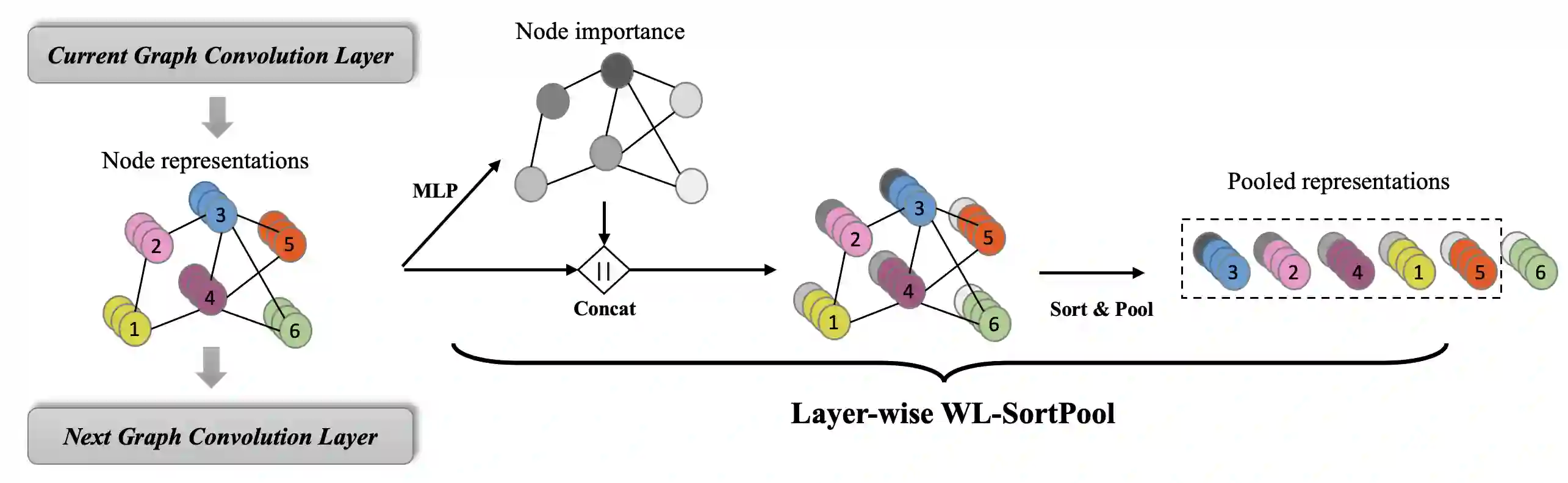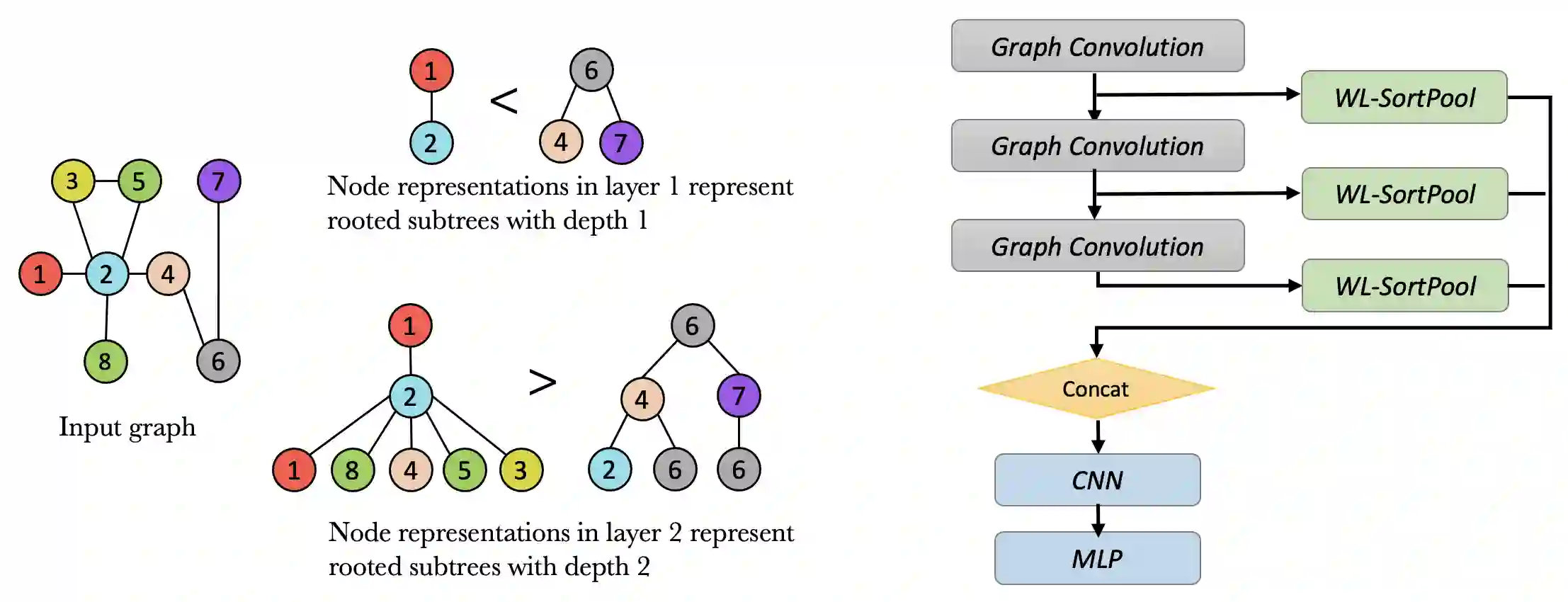 Graph neural networks (GNNs) have revolutionized the field of machine learning on non-Euclidean data such as graphs and networks. GNNs effectively implement node representation learning through neighborhood aggregation and achieve impressive results in many graph-related tasks. However, most neighborhood aggregation approaches are summation-based, which can be problematic as they may not be sufficiently expressive to encode informative graph structures. Furthermore, though the graph pooling module is also of vital importance for graph learning, especially for the task of graph classification, research on graph down-sampling mechanisms is rather limited. To address the above challenges, we propose a concatenation-based graph convolution mechanism that injectively updates node representations to maximize the discriminative power in distinguishing non-isomorphic subgraphs. In addition, we design a novel graph pooling module, called WL-SortPool, to learn important subgraph patterns in a deep-learning manner. WL-SortPool layer-wise sorts node representations (i.e. continuous WL colors) to separately learn the relative importance of subtrees with different depths for the purpose of classification, thus better characterizing the complex graph topology and rich information encoded in the graph. We propose a novel Subgraph Pattern GNN (SPGNN) architecture that incorporates these enhancements. We test the proposed SPGNN architecture on many graph classification benchmarks. Experimental results show that our method can achieve highly competitive results with state-of-the-art graph kernels and other GNN approaches.