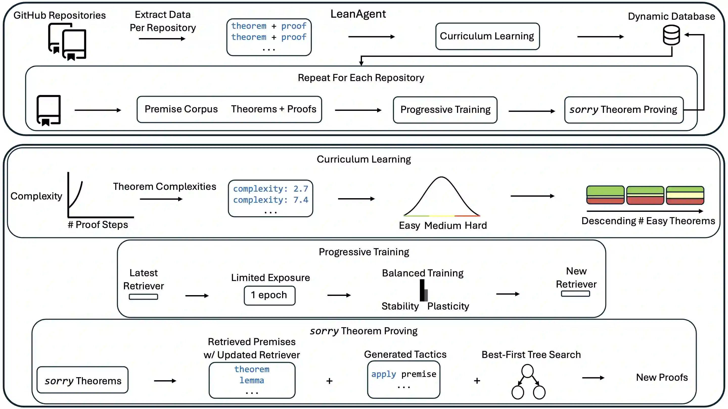 Large Language Models (LLMs) have been successful in mathematical reasoning tasks such as formal theorem proving when integrated with interactive proof assistants like Lean. Existing approaches involve training or fine-tuning an LLM on a specific dataset to perform well on particular domains, such as undergraduate-level mathematics. These methods struggle with generalizability to advanced mathematics. A fundamental limitation is that these approaches operate on static domains, failing to capture how mathematicians often work across multiple domains and projects simultaneously or cyclically. We present LeanAgent, a novel lifelong learning framework for theorem proving that continuously generalizes to and improves on ever-expanding mathematical knowledge without forgetting previously learned knowledge. LeanAgent introduces several key innovations, including a curriculum learning strategy that optimizes the learning trajectory in terms of mathematical difficulty, a dynamic database for efficient management of evolving mathematical knowledge, and progressive training to balance stability and plasticity. LeanAgent successfully proves 162 theorems previously unproved by humans across 23 diverse Lean repositories, many from advanced mathematics. It performs significantly better than the static LLM baseline, proving challenging theorems in domains like abstract algebra and algebraic topology while showcasing a clear progression of learning from basic concepts to advanced topics. In addition, we analyze LeanAgent's superior performance on key lifelong learning metrics. LeanAgent achieves exceptional scores in stability and backward transfer, where learning new tasks improves performance on previously learned tasks. This emphasizes LeanAgent's continuous generalizability and improvement, explaining its superior theorem-proving performance.