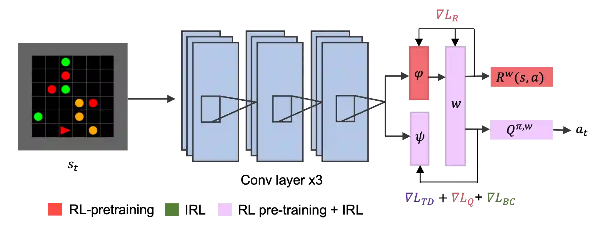 翻译:本文讨论了反强化学习(IRL)问题 -- -- 推断代理人的奖赏功能是观察其行为。IRL可以为学徒学习提供一个普遍和紧凑的代表性,并能够准确地推断人类的偏好,以协助他们。% 并提供更准确的预测。然而,有效的IRL具有挑战性,因为许多奖励功能可以与观察到的行为相容。我们侧重于如何利用先前的强化学习(RL)经验,使这些偏好更快和更有效地学习。我们建议IRL的算法BASIS(通过从抽样中测算继承和性能能力获得BAISIS),利用多重任务RL的预培训和后续特征,使代理人能够建立强有力的基础,使意图跨越某一领域可能达到的目标空间。当仅仅受到少数专家演示的优化新目标时,代理人利用它的基础快速和有效地推算奖励功能。我们的实验表明,我们的方法在推断和优化已显示的奖赏功能方面非常有效,准确推导出不到100个目标的奖励功能。