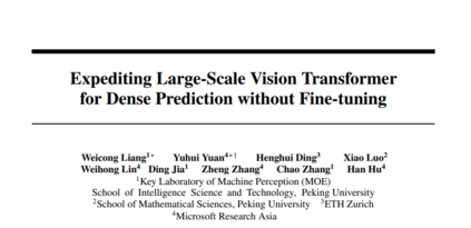 视觉transformer最近在各种视觉任务中取得了有竞争力的结果,但在处理大量token时仍然存在很大的计算成本。许多先进的方法已经开发出来,以减少大规模视觉transformer中的token总数,特别是对于图像分类任务。通常,他们根据与 [class]标记的相关性选择一组基本标记,然后微调视觉transformer的权重。这种微调对于密集预测来说不太实用,因为与图像分类相比,计算量和GPU内存成本要高得多。在本文中,我们关注一个更具挑战性的问题,即在不进行任何额外的再训练或微调的情况下,加速大规模视觉transformer进行密集预测。针对高密度预测需要高分辨率表示的事实,我们提出了两个非参数运算符,一个是减少token数量的token聚类层,一个是增加token数量的token重构层。为了实现这一目标,我们执行了以下步骤:(i)我们使用token聚类层将相邻的token聚在一起,从而产生保持空间结构的低分辨率表示;(ii)仅将以下transformer层应用于这些低分辨率表示或集群token;(iii)我们使用token重构层从精炼的低分辨率表示重新创建高分辨率表示。该方法在目标检测、语义分割、泛视分割、实例分割和深度估计等五种密集预测任务中取得了良好的效果。因此,该方法在不微调官方权重的情况下,在ADE20K上保持99.5%的性能的同时,加速了40%↑FPS并节省了30%↓GFLOPs的“Segmenter+ViT-L/16”。 https://www.zhuanzhi.ai/paper/d7612e394722b9aa764f35a645789efe