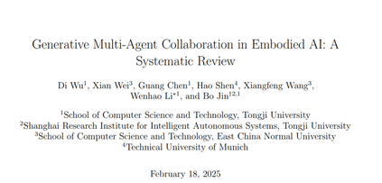 当前的具身多智能体协作方法,尤其是涉及FM的系统,通常缺乏坚实的理论基础。尽管在开发实际系统方面取得了重大进展,但关于支配智能体交互的潜在原理和集体智能的理解仍然非常有限。对动态协作的深入理论探索,包括通信、协调和共识的作用,是推动该领域发展的关键。此外,具身多智能体系统和模型的可靠性与可解释性在安全关键型环境中尤为重要,如自动驾驶和智能铁路等应用场景。 6 结论