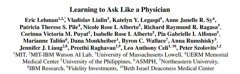 这项研究得到了麻省理工学院-IBM Watson人工智能实验室的部分支持。其他合著者包括麻省理工学院医学工程与科学研究所的Leo Anthony Celi;麻省理工学院-IBM Watson人工智能实验室的Preethi Raghavan和Jennifer J. Liang。Liang;布法罗大学的Dana Moukheiber;马萨诸塞大学洛厄尔分校的Vladislav Lialin和Anna Rumshisky;麻省理工学院的Katelyn Legaspi、Nicole Rose I. Alberto、Richard Raymund R. Ragasa、Corinna Victoria M. Puyat、Isabelle Rose I. Alberto以及Pia Gabrielle I。Alfonso;菲律宾大学的Anne Janelle R. Sy和东部大学Ramon Magsaysay纪念医疗中心的Patricia Therese S. Pile;马尼拉雅典耀大学医学和公共卫生学院的Marianne Taliño;以及东北大学的Byron C. Wallace。
