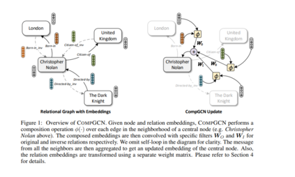 本文作者从实际的图数据特点出发,设计了一种针对多关系有向图的图神经网络 CompGCN 来同时学习节点和关系的表示。同时,为了降低大量不同类型关系带来的参数,这里作者设计了一种分解操作 composition operation,将所有关系都用一组基的加权组合来表示。这样用于描述关系的参数只和基的个数有关。 设计了 CompGCN 模型,一种可以考虑多种关系信息的图神经网络框架,来同时学习节点和关系的表示。证明了 CompGCN 与之前的多关系 GNN 之间的联系。实验验证了 CompGCN 的有效性。