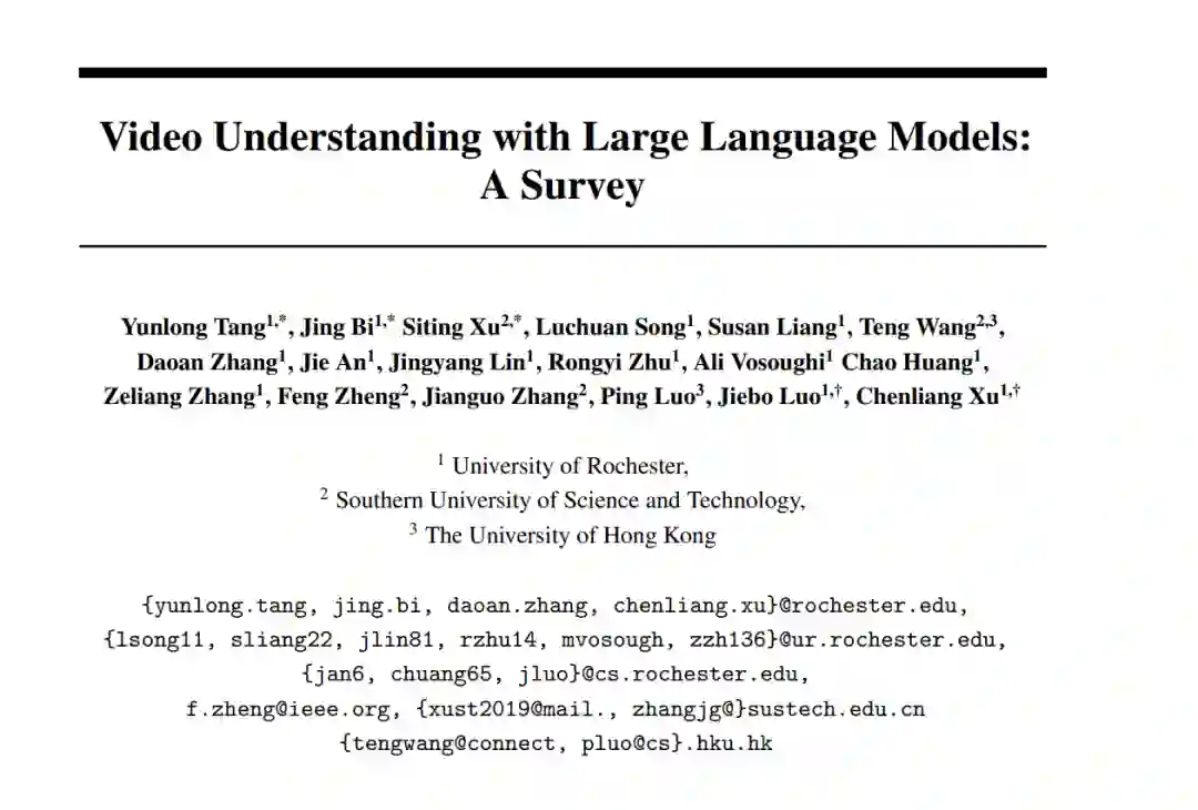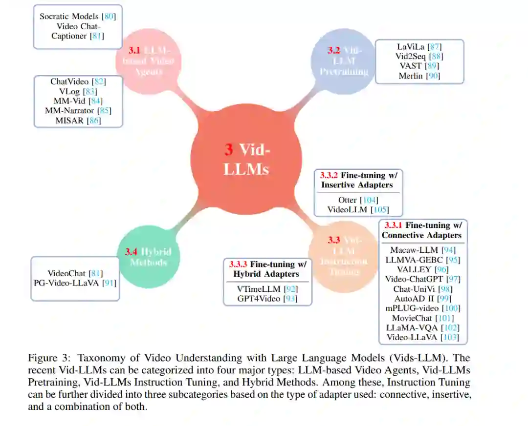 ——视频扩散模型和LLMs,缺乏对视频理解的专注。尽管对社区有重要价值,但以前的综述论文在基于大型语言模型调研一般视频理解任务方面留下了差距。本文通过对使用大型语言模型的视频理解任务进行全面综述来填补这一差距。