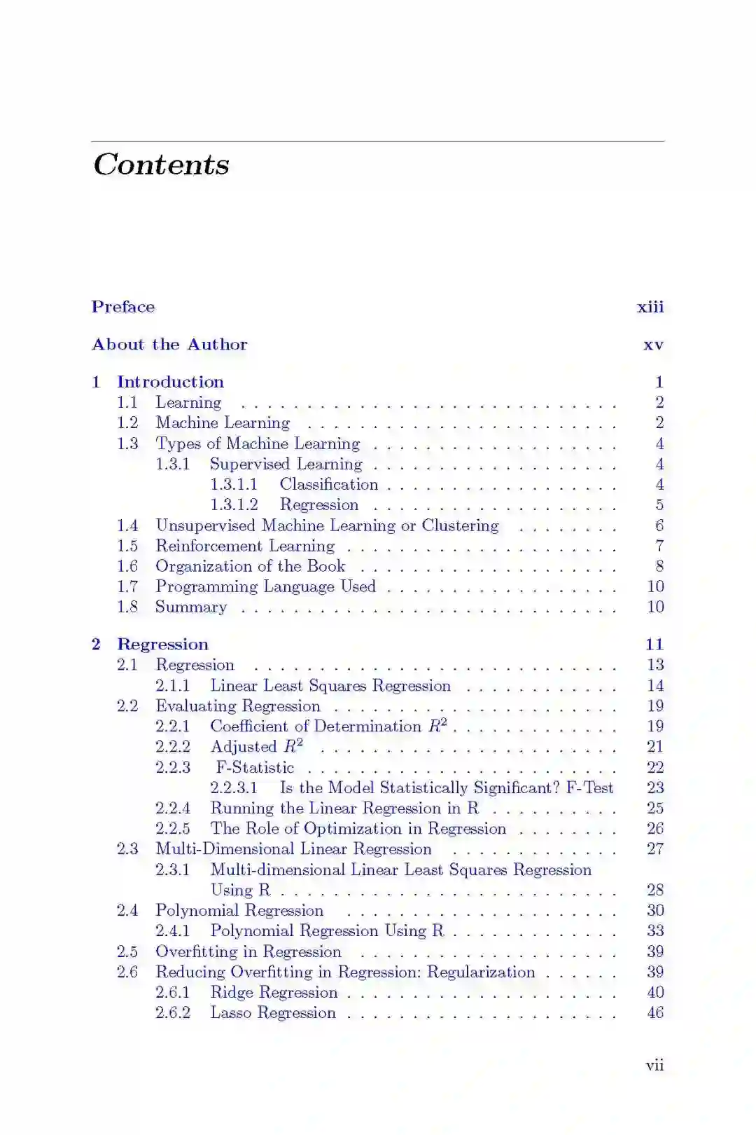 涵盖讨论的机器学习算法的数学细节,以确保详实的理解,使进一步的探索成为可能。 给出了合适的编程示例,从而确保对机器学习方法的概念、理论和实践理解。这本书的目的主要是介绍机器学习的基本主题先进的本科生和开始研究生。题目的数量被控制在很小的范围内,以便在一个学期或一个季度内涵盖所有内容。在短时间内所能教授的内容范围内,这些主题覆盖得很深入。因此,这本书可以为学生阅读高级书籍和研究论文提供基础。