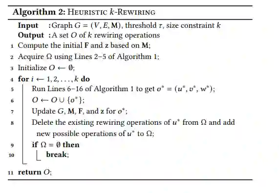 摘要:推荐系统通常会向用户推荐与他们过去消费内容相似的内容。如果一个用户碰巧接触到强烈极端化的内容,她随后可能会收到推荐,这可能会把她引向越来越激进的内容,最终陷入我们所说的“激进路径”。在本文中,我们使用基于图的方法研究缓解激进化路径的问题。具体来说,我们将“下一步关注什么”的推荐集建模为一个d规则的有向图,其中节点对应于内容项、推荐链接和可能的用户会话路径。我们将代表激进内容的节点的“隔离”分数衡量为从该节点到代表非激进内容的任何节点的随机行走的预期长度。隔离分数越高,用户越有可能陷入激进化路径。因此,我们定义了通过选择少量的边来“重新布线”来减少激进化路径的普遍性的问题,从而最小化所有激进化节点的分离得分最大值,同时保持推荐的相关性。我们证明了在任意因子范围内寻找最优推荐集的问题是NP-hard和NP-hard的近似问题。因此,我们将注意力转向启发式,并提出了一种高效而有效的基于吸收随机游走理论的贪婪算法。我们在视频和新闻推荐背景下的真实数据集上的实验证实了我们的推荐的有效性。