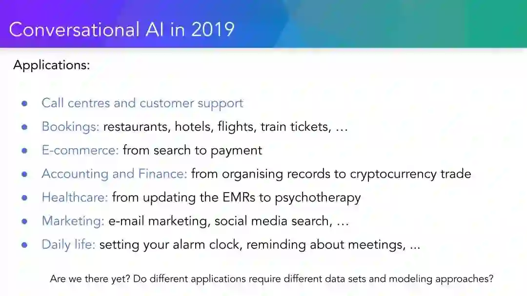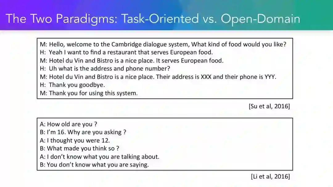 教程简介: 最近AI对话技术的飞跃式发展,无疑与越来越复杂的深度学习算法有关,而深度学习算法所捕捉到的模式是由各种数据收集机制生成的。因此,本教程的目标是双重的。首先,它旨在让学术界熟悉基于统计学的对话系统算法设计的最新进展,其中包括开放性领域和基于任务的对话范例。本教程的重点是介绍对话系统端到端的学习机制,以及它们与更加常见的模块系统之间的关联。从理论上讲,从数据中学习端到端可以为对话系统提供无缝的、空前的可移植性,有着非常广阔的应用前景。从实践的角度来看,该领域仍然存在大量的研究挑战和机会:在本教程中,我们会分析理论和实践之间的差异,并介绍当前端到端对话学习的主要优势和实践中的局限性。