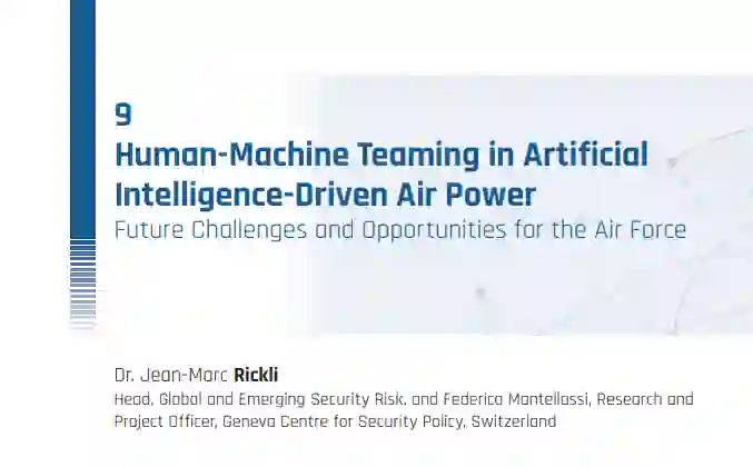 人工智能(AI)正日益进入军事领域。虽然爱好者、否认者和实用主义者可能对人工智能将在多大程度上赋予战斗空间优势持不同意见,但它已经被用作分析工具、破坏者和力量倍增器(Rickli和Mantellassi,2023)。在乌克兰的冲突中,人工智能通过缩短传感器到射手的时间、分析截获的通信、传播情报以及在信息战中利用人工智能来优化目标定位周期,明显体现了这种趋势(Rickli, Mantellassi, and Juillard, 2022, p.22)。人工智能的进步不仅在数量上加速了战争的自主性和自动化,而且在质量上也加速了完全或部分由机器完成的一系列任务。随着人类和机器在战斗空间中的共存不断扩大,成功理解如何实现人类和机器之间的最佳合作是释放人工智能在军事行动中的全部潜力的关键。本文将重点讨论人工智能和人机协作对空军的新的重要性,在放大信任问题之前,特别关注 "忠诚的僚机 "概念。它还将讨论人机协作如何与其他新兴技术,特别是神经技术相融合,以重新定义未来的可能性。