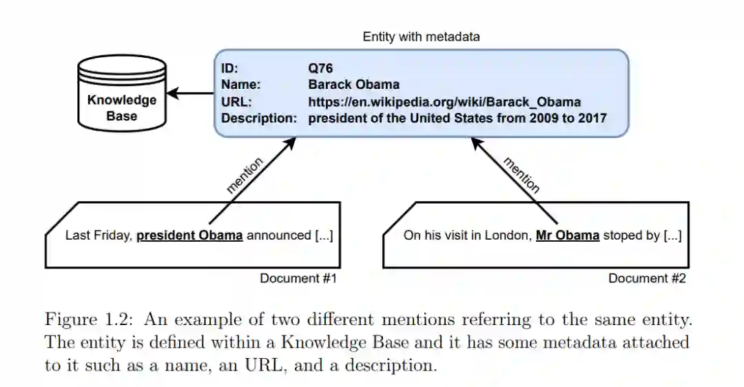 实体在我们表示和汇总知识的方式中处于中心地位。例如,像维基百科这样的百科全书是按实体组织的(例如,每篇维基百科文章对应一个实体)。书面百科全书已有约两千年的历史(例如,《自然史》可以追溯到公元77年),在此期间,它们在形式、语言、风格及许多其他方面都有了很大的发展。《百科全书,或科学、艺术和工艺详解词典》(在1751年至1772年间于法国出版;狄德罗和达朗贝尔,1751)和《大英百科全书》(在1768年至1771年间于苏格兰出版;斯梅利,1768)通常被认为是现代历史上第一部印刷的百科全书,并定义了信息传播的重大变革。尽管内容和语言可能有所不同,但通过实体、类别和交叉引用组织信息的基本方式在几个世纪以来几乎没有改变。以这种方式组织世界知识对人类来说是自然且方便的,但对机器来说如何呢?机器学习算法能否利用我们的分类方式?我们能否构建能够连接不同知识点或区分模糊概念的计算机算法?虽然这些复杂问题目前还没有明确的答案,但在本文中,我们将论证,向自然语言处理(NLP)算法提供关于实体性质的额外信息,可以提高其在许多有用应用中的性能。