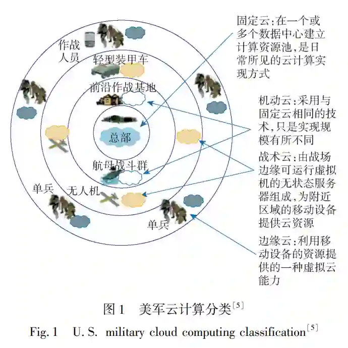 无人集群作战是指通过多无人平台的传感设备获取战场实时数据,并通过可靠通信网络实现信息交换,充分发挥自身作战能力,以最大化作战效益的一种作战模式。该模式具有分布式决策、体系鲁棒性高、效费交换比高等优势,目前已成为未来无人作战发展的主要趋势之一。现代作战中高效信息流通是保障作战效率的关键因素。由于作战环境充满电磁辐射干扰,向云服务中心的请求通常会受限于较高的传输成本和时延。另外,对于传统的中心式作战决策模式,由于由局部态势信息向中心的共享存在滞后和不一致问题,无法将决策中心、战地指挥所与信息流末端的作战平台形成统一的调度和管理。通常高层决策中心决策时所依赖的信息已经过逐级处理,这势必会把部分对态势评估有价值的信息忽略掉。同时随着越来越多的智能化作战平台投入战场,终端会产生大量的数据而得不到及时的利用,庞大的信息整合与处理对指挥决策而言是一大挑战。根据《解放军报》2021年11月30日的作战专论“智能化战争:强者胜的三个维度”,未来智能化战争中,连接力、计算力、认知力等新的战斗力因子成为左右战争胜负的新变量,其中计算力强者胜理念推动了算力的云边端供给模式。特别是近年来,美军大力发展类似F-22战机充当“战斗云”(云+边+端计算模式),提高无人系统的人工智能技术含量,以推动自主作战平台的自协同能力提升等。基于当前无人集群作战的背景下,战场决策与控制权逐渐从云上向战术边缘下沉,从平台的角度来看,旨在充分开发边缘平台数据获取、自主决策的能力。从作战任务环境来看,决策与控制的下沉弥补了单平台资源紧缺、信息受限、能力不足等缺点,能够针对日益复杂的任务和动态变化的作战边界做出及时响应。云边端模式下的边缘计算具备低延迟、高安全性、低流量等优势,能够提供作战平台高可靠和隐私保护的本地计算服务,在军事领域具有广泛的应用需求和前景[1]。为此本文拟面向未来智能化战争的无人集群作战技术,研究“云+边+端”计算模式下边缘计算的发展现状和未来趋势。本文对无人集群、边缘计算的发展简史以及整体过程进行纵向简述,提出面向战术边缘的云-边-端分布式系统框架,引出目前无人集群作战背景下边缘计算的关键技术;综述了该框架涉及的边缘计算框架、边云协同、计算卸载、边缘指挥控制等关键技术;阐明了无人集群边缘计算发展趋势并对全文进行了总结。