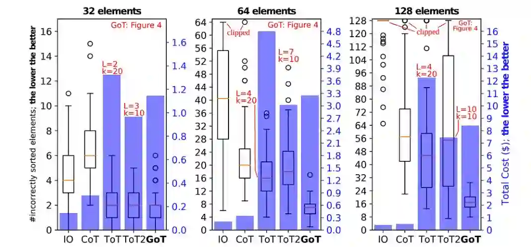 2、GoT提示同样存在一个缺点:其导出解决方案的总成本高于Few-shot、CoT等更直接的方法。如下图所示: