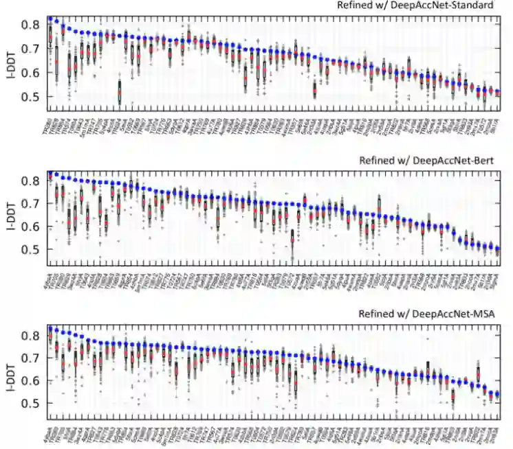 图2.使用DeepAccNet-Standard、-Bert和-MSA最终选择的模型质量