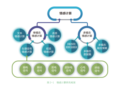 随着计算机科学的不断发展,以及社会对个性 化人机交互需求的不断增强,情感计算在人机交互 中的重要性日益凸显,基于情感理解与表达的人机 交互研究也受到了各领域的广泛关注。情感计算对 人的感知、推理、决策、规划、创造、社会互动等 许多活动起着不可或缺的作用。基于情感计算的研 究在行为分析科学中具有重要意义。情感计算大致 可分为单模态情感计算和多模态情感计算,本章将 按照图 2-1 所示,对情感计算展开介绍。