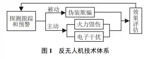 当前的反无人机技术体系主要由探测跟踪和预警技术、毁伤技术、干扰技术和伪装欺骗技术4大部分组成[1], 其作战过程如图 1所示.