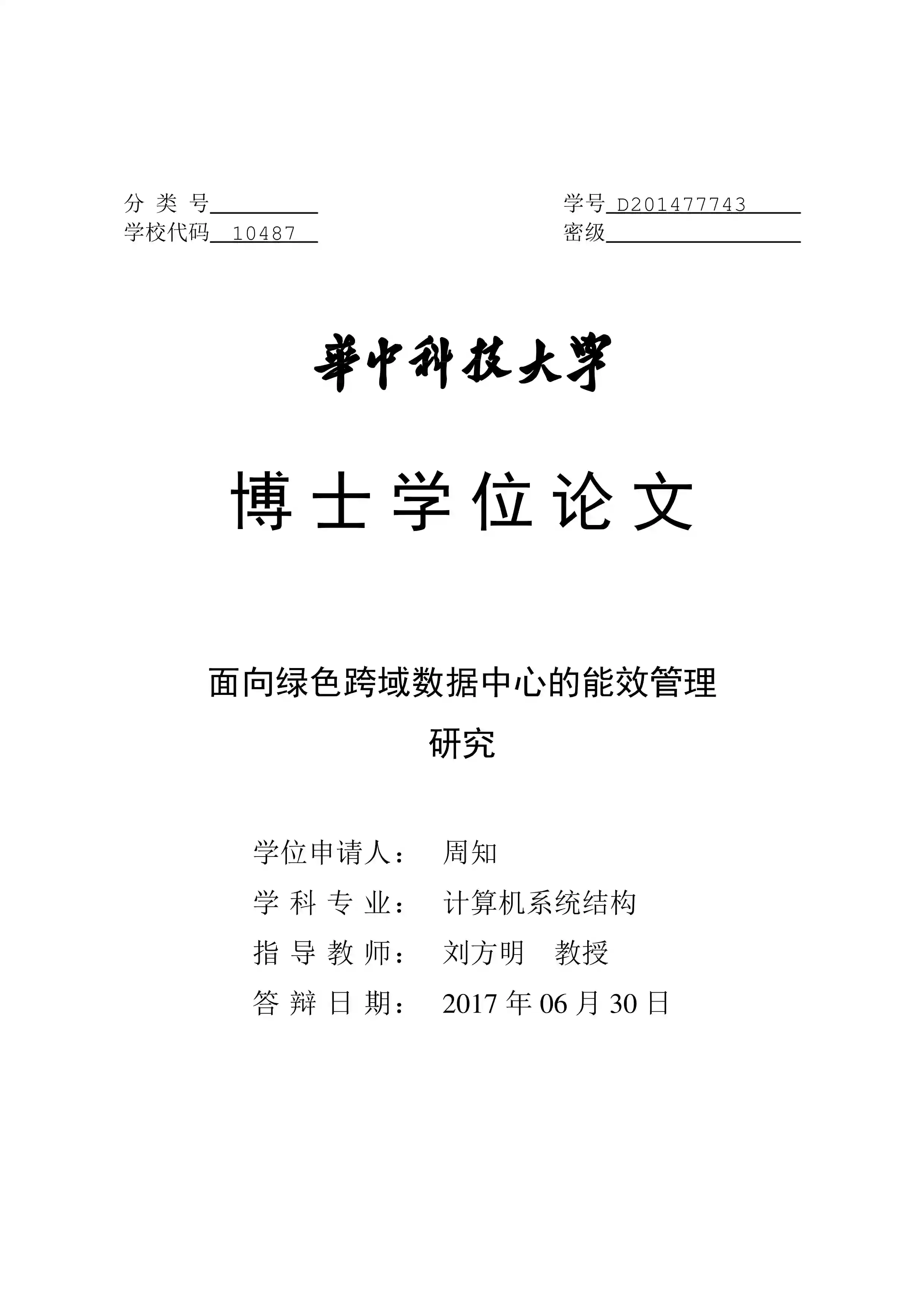 关键词: 云计算 跨域数据中心 能效 碳排放 可再生能源