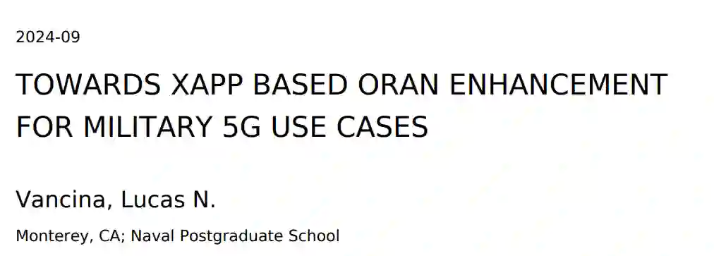 本论文围绕第 2 章和第 3 章中两篇有待同行评审的出版物展开。第 2 章是一篇立场论文,介绍了与军事通信特别相关的新型 ORAN 5G 增强技术。第 3 章是一份技术报告,通过提供使用自定义 E2 服务模型扩展 ORAN 的详细开发指南,为该用例和其他用例的一个关键实施障碍提供了解决方案。在本论文发布时,该论文尚未提交给任何出版物,但将来可能会提交。第 4 章是一个简短的结论。