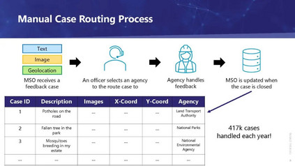 该引擎由基于历史数据的深度学习建立的分类模型组成,实现了良好的准确性,可以部署在OneService聊天机器人[2]中。创建这个引擎的最大挑战之一是处理多模态反馈数据,这些数据包括: (1)文本:对问题的描述, (2)地理位置:问题发生的位置,以及 (3) 图片:补充文字描述的图片。