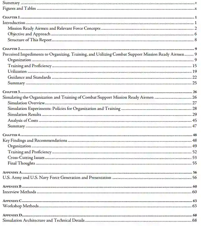 随着美国空军(USAF)调整与同级对手潜在冲突中的部队生成与部署模式,需建立培养多技能复合型"任务就绪空勤人员"(MRA)的机制,以胜任包括敏捷战斗部署(ACE)分散作战在内的多样化任务。MRA培养路径对维护、后勤、工程与部队防护等作战支援(CS)领域人员尤为复杂,因其传统训练体系未针对MRA需求设计。CS类MRA将通过空军新型部队生成模型(AFFORGEN)进行培养。针对相关挑战,兰德公司研究人员评估了CS类MRA在ACE框架下的编组、训练与运用流程。