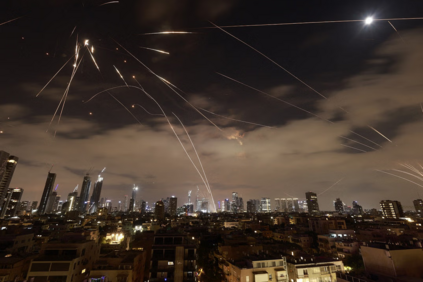 图:2025年6月16日,以色列防空系统启动,拦截特拉维夫上空的伊朗导弹。照片:法新社