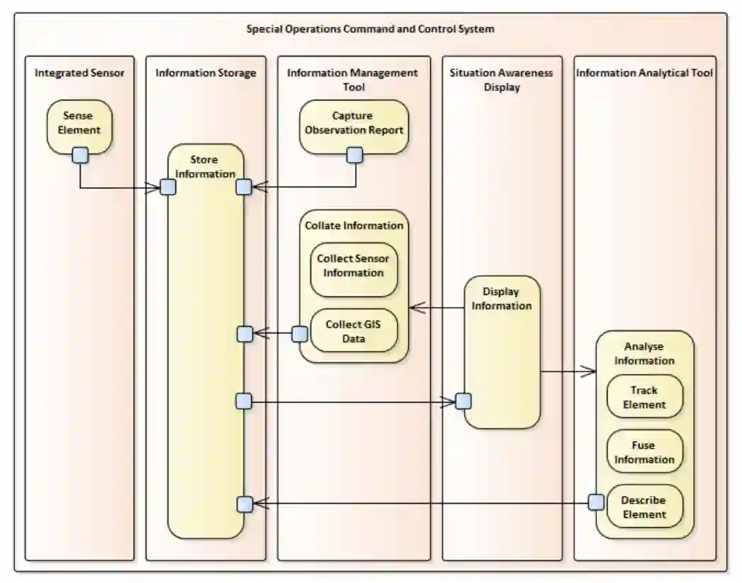特种作战ConOps将需要一个模块化的C2系统,因为同一个用户在不同的任务中可能面临不同的挑战。C2系统必须支持对局势的理解,以实施对活动的控制和协调(Rantakokko等人,2010年,Alberts 2011)。管理一个模块化系统的元素和接口可能会成为一个复杂的问题。建议的MBSE过程将协助系统工程师为预期的复杂性和分歧情况得出具体要求。
