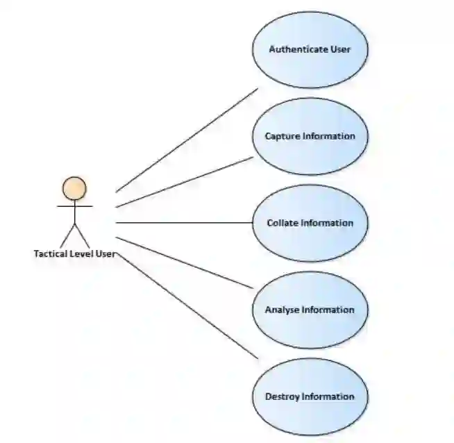 系统需要实现基于角色的认证,以保护信息的安全性和完整性。这只允许某些用户以规定的访问(需要知道)权限访问信息。与任务相关的作战环境信息是由观察事件的信息收集资源在系统中采集的。要在系统中捕获的典型信息可能包括图像、视频、自己的位置报告、气象信息、地理(地形)信息和社会媒体。