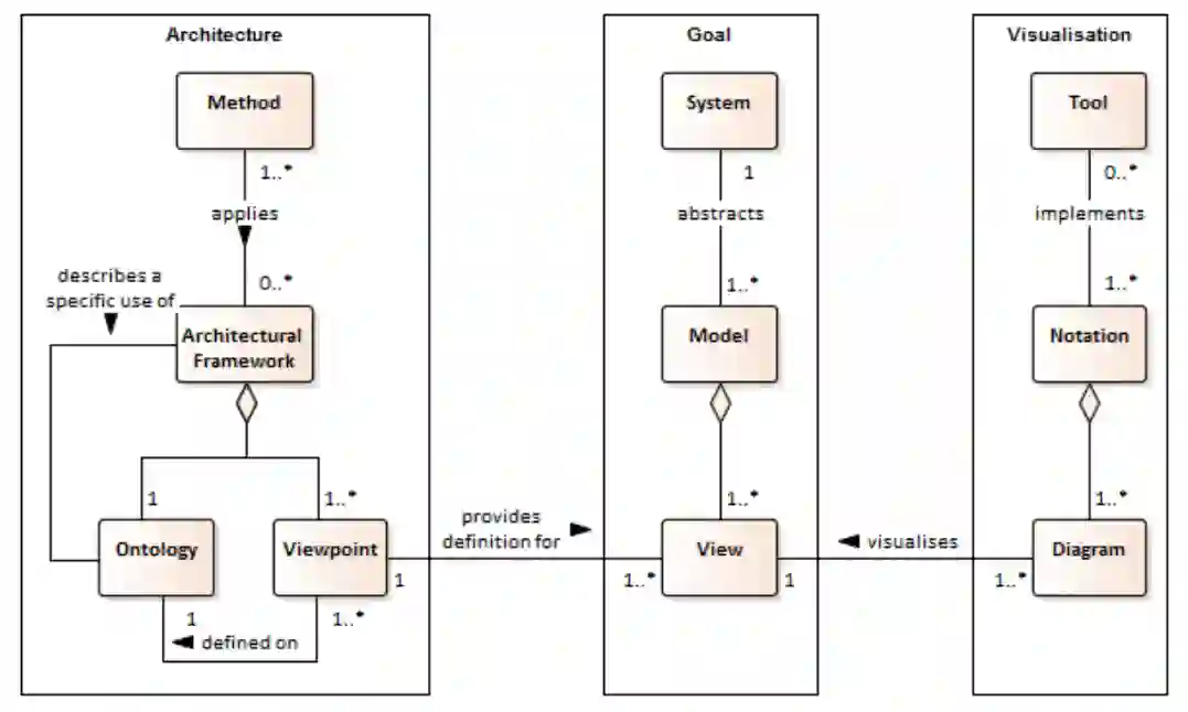 MBSE不仅仅是开发一套图来粘贴到基于文本的报告中。仅仅使用标准建模符号来绘制这些图表并不能改善模型。MBSE的元模型(Holt and Perry 2017),如图1所示,指出了被建模的系统与架构框架内建模工具的应用之间的关系。这个元模型为开发适合特定应用领域的MBSE方法提供了基础。