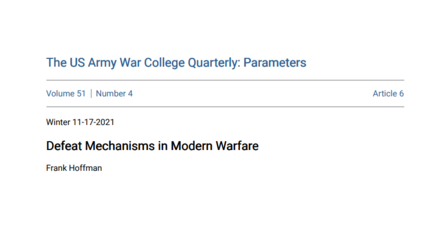 作者:弗兰克-霍夫曼(Frank Hoffman)博士是位于华盛顿特区的国防大学的杰出研究人员。