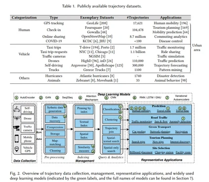 传感器和移动设备的最新进展使城市轨道数据的可用性和收集量空前增加,从而增加了对更有效地管理和分析正在产生的数据的方法的需求。在本次综述中,我们全面回顾了轨迹数据管理的最新研究趋势,包括轨迹预处理、轨迹存储、常用的轨迹分析工具,如查询空间和空间文本的轨迹数据,以及轨迹聚类。我们还探讨了四种密切相关的分析任务,它们通常用于交互式或实时处理的轨迹数据。并首次回顾了深度轨迹学习。最后,我们概述了轨道管理系统应具备的基本质量,以最大限度地提高灵活性。
