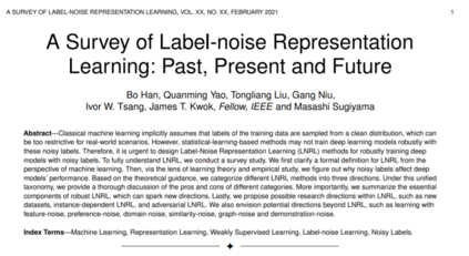 经典的机器学习隐含地假设训练数据的标签是从一个干净的分布中采样,这对于真实世界的场景来说可能太有限制性了。然而,基于统计学习的方法可能不能在这些嘈杂的标签下稳健地训练深度学习模型。因此,设计标签-噪声表示学习(Label-Noise Representation Learning, LNRL)方法对具有噪声标签的深度模型进行鲁棒训练迫在眉睫。为了充分了解LNRL,我们进行了一项调研研究。我们首先从机器学习的角度阐明了LNRL的形式化定义。然后,通过学习理论和实证研究的视角,我们找出了为什么嘈杂标签会影响深度模型的性能。在理论指导的基础上,我们将不同的LNRL方法分为三个方向。在这个统一的分类下,我们对不同类别的利弊进行了全面的讨论。更重要的是,我们总结了鲁棒LNRL的基本组成部分,可以激发新的方向。最后,我们提出了LNRL可能的研究方向,如新数据集、依赖实例的LNRL和对抗LNRL。我们还展望了LNRL以外的潜在方向,如特征噪声学习、偏好噪声学习、域噪声学习、相似噪声学习、图噪声学习和演示噪声学习。