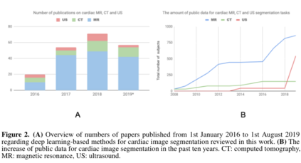 摘要:深度学习是近年来应用最广泛的心脏图像分割方法。在这篇文章中,我们回顾了超过100篇使用深度学习的心脏图像分割论文,这些论文涵盖了常见的成像方式,包括磁共振成像(MRI)、计算机断层扫描(CT)和超声(US)以及感兴趣的主要解剖结构(心室、心房和血管)。此外,公开可用的心脏图像数据集和代码库的摘要也包括在内,为鼓励重复性研究提供了基础。最后,我们讨论了当前基于深度学习的方法的挑战和局限性(缺乏标签、不同领域的模型可泛化性、可解释性),并提出了未来研究的潜在方向。