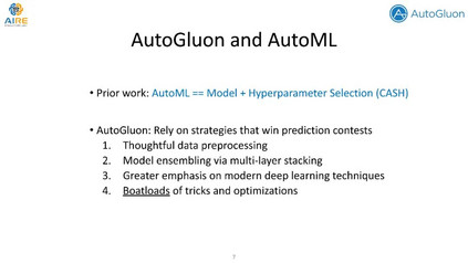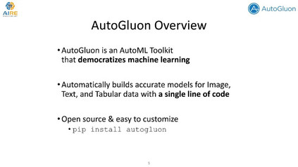 我们教程的主要重点是自动构建和训练深度学习模型,这些模型功能强大,但手动管理起来很麻烦。本教程中涉及的每个主题都附带了一个实践的Jupyter笔记本,它实现了最佳实践(教程前后都可以在GitHub上获得)。大部分代码采用了AutoGluon,这是一个最新的开源AutoML工具包,它既先进又易于使用。