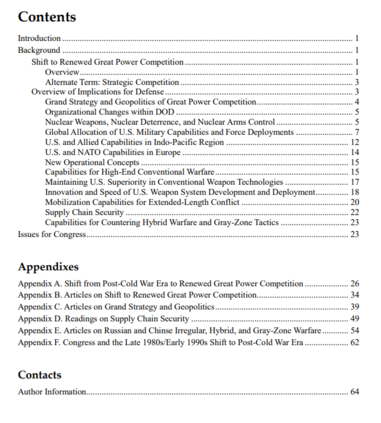 与中国和俄罗斯等大国竞争的出现,深刻地改变了关于美国国防问题的对话,这与后冷战时代的对话不同。反恐行动和美国在中东的军事行动--在2001年9月11日的恐怖袭击后被移到了美国国防问题讨论的中心--现在已不再是对话中的主要内容,现在对话的特点是新的或重新强调以下内容,这些内容都与中国和/或俄罗斯有关: