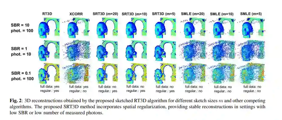 单光子光探测和测距(激光雷达)捕获三维场景的深度和强度信息。根据观测到的光子重建场景是一项具有挑战性的任务,因为与背景光源相关的虚假检测。为了解决这一问题,有大量的三维重建算法利用自然场景的空间规律性来提供稳定的重建。然而,现有的大多数算法的计算和存储复杂度与记录光子的数量成正比。这种复杂性阻碍了它们在每秒获取数十亿光子的现代激光雷达阵列上的实时部署。利用最近的激光雷达草图框架,我们表明,它是可能的修改现有的重建算法,这样他们只需要一个光子信息的小草图。特别地,我们提出了一种最新的先进算法的草图版本,该算法使用点云去噪来提供空间正则化重建。在真实的激光雷达数据集上进行的一系列实验表明,在实现与全数据情况相同的重构性能的同时,执行时间和内存需求显著减少。