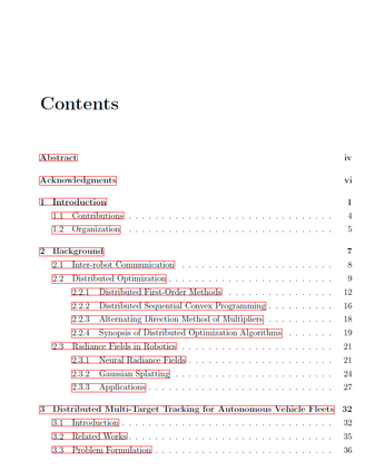 为了使机器人系统能够在真实世界中常常令人惊讶且不可预测的环境中成功运行,它们必须具备在部署期间学习和适应的能力。然而,在机器人领域,通常将每个机器人视为一个单独的孤立系统,必须独立学习新技能并对环境作出反应。实际上,世界早已是一个高度互联的环境,数以亿计的独立设备持续进行通信。因此,没有理由机器人系统不能遵循相同的模式。事实上,由于数据获取通常是有效且高效学习的瓶颈,多机器人系统可以通过协作共享多个机器人收集的数据,实现学习速度的倍增效应。 本论文提出了三种用于互联多机器人系统协作学习的新型算法,以及支持并验证它们在真实世界中部署的工具与分析方法。 第一个算法在本论文的第三章中介绍,是一种新颖的自主车队对数百个目标车辆进行同时跟踪的方法。通过利用多个自动驾驶车辆的实时数据,该算法使车队能够形成对所跟踪目标车辆运动的城市级感知。每辆车队中的车辆随后都能够利用这种感知,即使在没有直接视线的情况下,也能预测被跟踪车辆的未来运动,从而避免诸如盲角等危险情况。我们通过在真实的自动驾驶车辆仿真环境中进行城市级分布式多目标跟踪演示了该方法的潜力。 第四章介绍了本论文的第二个算法贡献,一种使互联机器人能够利用各自独立收集的数据,以通信高效的方式协作优化神经网络参数的方法。该算法可推广至任何神经网络架构,且从不需要传输原始数据,从而保证了通信效率。为了验证我们的观点,我们展示了该方法在三个不同的应用场景下优于基线方法:分类、神经隐式映射和强化学习。 最后,在第五章中,我们讨论了本论文的最后一个贡献,一种多机器人度量-语义映射算法,使多种不同的机器人系统能够异步且协作地学习高度详细的环境地图。在实验演示中,我们展示了该方法在多个不同环境中的有效性,并证明了生成的地图可用于多机器人无碰撞运动规划,同时支持开放词汇的语义目标指定。