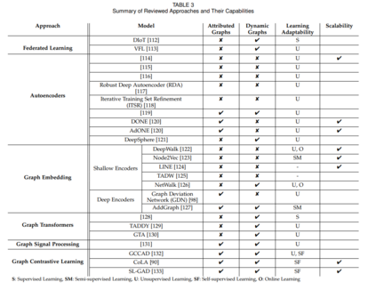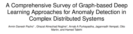 现有的综述主要是将异常检测作为一个单独的问题来处理,或者应用于特定的领域,如社交媒体互动、网络流量、推荐系统等。一些研究工作主要是基于图学习[5]的异常检测。一些调查侧重于异常检测的具体应用,如[6]。少数论文关注大数据异常检测及其挑战[7],[8]。此外,还有大量的勘探使用深度学习技术[2],[3],[9],[10],[11]来处理一般的异常检测。然而,这些工作都没有单独研究如何利用图来检测现实世界中的异构分布式系统中的异常。