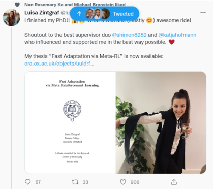 强化学习(Reinforcement Learning, RL)是一种训练人工智能体自主与世界互动的方法。然而,在实践中,强化学习仍然有局限性,禁止在许多现实世界环境中部署强化学习智能体。这是因为RL需要很长时间,通常需要人工监督,并产生在不熟悉的情况下可能表现出出乎意料的特殊智能体。本文的目标是使RL智能体在现实世界中部署时更加灵活、稳健和安全。我们开发具有快速适应能力的智能体,即能够有效学习新任务的智能体。为此,我们使用元强化学习(Meta- RL),在这里我们不仅教智能体自主行动,而且教智能体自主学习。基于快速适应可以分为“任务推理”(理解任务)和“任务求解”(解决任务)的直觉,我们提出了四种新的元RL方法。我们假设这种分离可以简化优化,从而提高性能,并且更适合下游任务。为了实现这一点,我们提出了一种基于上下文的方法,在这种方法中,智能体以表示其对任务的当前知识的上下文为条件。然后,智能体可以使用这一点来决定是进一步了解任务,还是尝试解决它。在第5章中,我们使用确定性上下文,并确定这确实可以提高性能并充分捕获任务。在接下来的章节中,我们将在上下文中引入贝叶斯推理,以实现在任务不确定性下的决策。通过结合元强化学习、基于上下文的学习和近似变分推理,开发了为单智能体设置(第6章)和多智能体设置(第7章)计算近似贝叶斯最优智能体的方法。最后,第8章解决了稀疏奖励的元学习的挑战,这是许多现实世界应用的重要设置。观察到,如果奖励稀疏,现有的元强化学习方法可能会完全失败,并提出一种方法来克服这一问题,即鼓励智能体在元训练期间进行探索。我们以对当前发展背景下的工作的反思和对开放问题的讨论来结束论文。综上所述,本文的研究成果极大地推动了基于Meta-RL的快速适应领域的发展。本文开发的智能体可以比以前的任何方法更快地适应各种任务,并且可以为比以前可能的更复杂的任务分布计算近似贝叶斯最优策略。我们希望这有助于推动Meta-RL研究的发展,并从长远来看,利用RL解决重要的现实世界挑战。