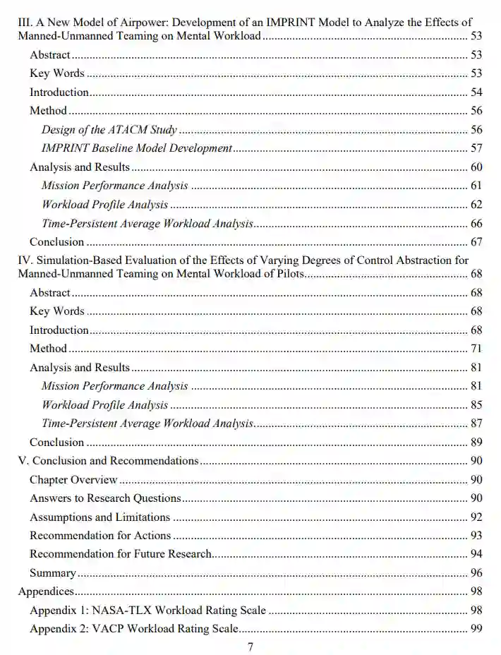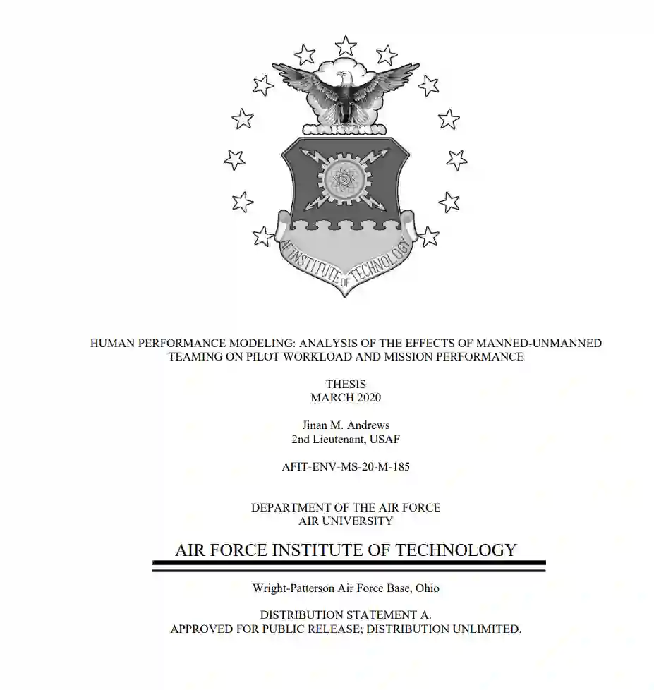 由于自主技术的出现,加上有人飞机的极度昂贵,美国国防部(DoD)对开发廉价的、可消耗的无人驾驶飞行器(UAVs)的兴趣增加,以便在马赛克战争中成为喷气式战斗机的自主僚机。就像一幅由小块组成的马赛克,战场指挥官可以利用分解的能力,如有人-无人组队(MUM-T),在有争议的环境中作战。在一个飞行员同时控制无人机和有人机的情况下,如果系统设计不利于稳定的工作量水平,那么飞行员管理所有系统可能是一个挑战。