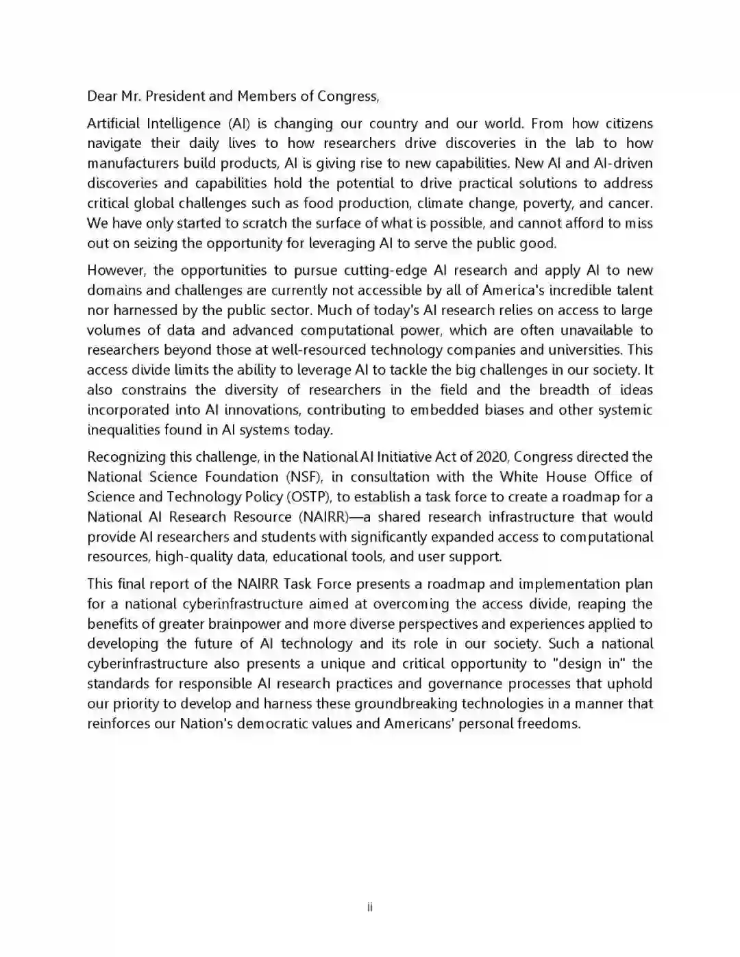 一个广泛可用的AI研究网络基础设施资源、数据、试验台、算法、软件、服务、网络和专业知识,如这份报告中所述,在美国将有助于为了所有人的利益去民主化AI研发态势。这将有助于创造途径来扩大从事AI的研究人员,致力于AI方法和应用的发展和多样化。网络基础设施也有助于为所有科学领域和学科的进步,包括AI审计、测试和评估等关键领域,可信人工智能、偏差缓解和AI安全开辟新的机会和多样化的视角,反过来可以导致新的想法,否则不会实现,并设置条件开发设计包容的AI系统。