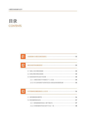 本白皮书首先分析了大模型训练所需的数据类型,并从产业实践出发破解了对训练数据的常见迷思和误解。在上述基础上,本书进而对训练数据的质量和规模进行讨论,发现高质量数据应在实践中检验效果,而难以用前置的客观标准衡量。同时,本书探讨了合成数据作为解决高质量训练数据供给不足的新方案,及其在大模型训练中的潜力。在训练数据合规方面,针对模型训练的特点,本书提出顺应模型发展的数据治理思路。最后,本书论述构建政府和社会力量协同的数据生态对满足大模型训练数据需求的重要性,并以阿里巴巴的实践为案例做说明和阐述。