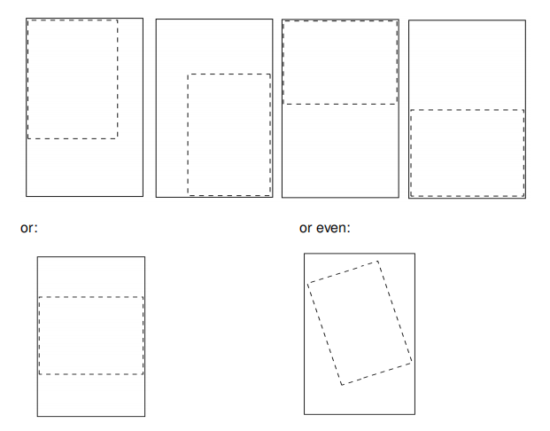 我的大部分地形布都是在6英尺9英尺的帆布上制作的,这使得它们足够大,可以满足一个好的会议游戏。由于我自己的游戏桌通常是4'或5'乘6',我可以通过将布的不同部分从桌子边缘垂下,在一块布上得到几种不同的地形安排,如下图所示,布在桌子上的部分用虚线标出。