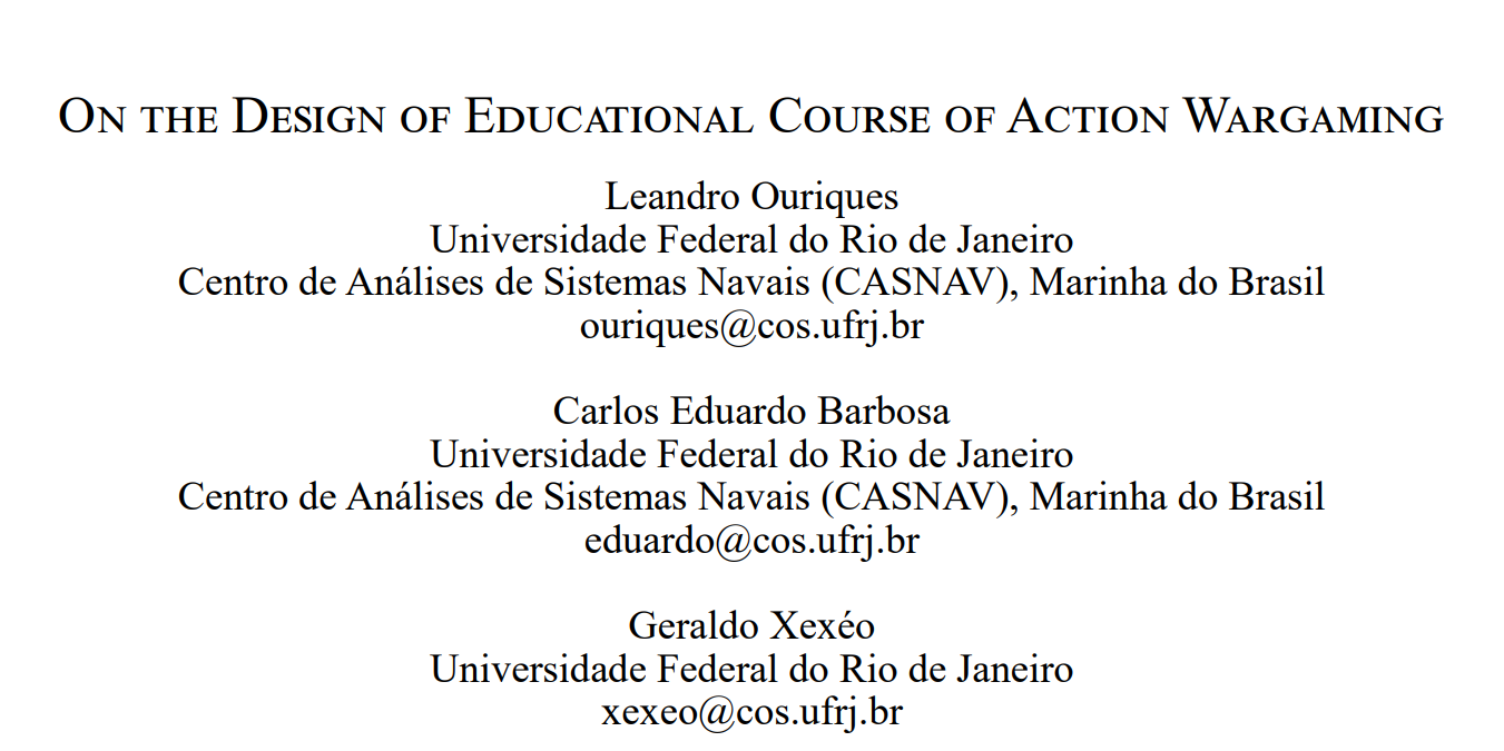 “联合规划过程”是一份描述巴西武装部队使用准则的文件。军队也可以将这些准则用于教育目的,在和平时期培训参谋人员。巴西国防部打算模拟军事力量的运用,以加快决策周期,增加行动成功的机会。更好地规划行动,更好地评估风险。作战方案(COA)兵棋推演模拟了每个友军的作战方案与可能的敌军作战方案。然而,理论过程缺乏描述如何进行作战方案推演的信息。因此,理论上的知识仅限于系统化的分析。COA兵棋推演一直是主观的,并且依赖于隐性知识。这项工作的目的是提出一种实施COA兵棋推演的方法,以及构建COA兵棋推演的概念模型,以便能够进一步使用计算机系统来支持其进行。兵棋推演的概念启发了这个游戏的设计。兵棋推演被定义为合成环境中冲突的建模或模拟,涉及敌对势力,玩家根据规则、程序和信息做出决策。将COA兵棋推演改进为一个教育性兵棋推演工具,可以模拟军事计划,支持玩家建立有效的战略,支持教官分析玩家的决定和裁判交战,并建立一个技术框架来收集决策数据,以便将来应用于知识管理和人工智能。