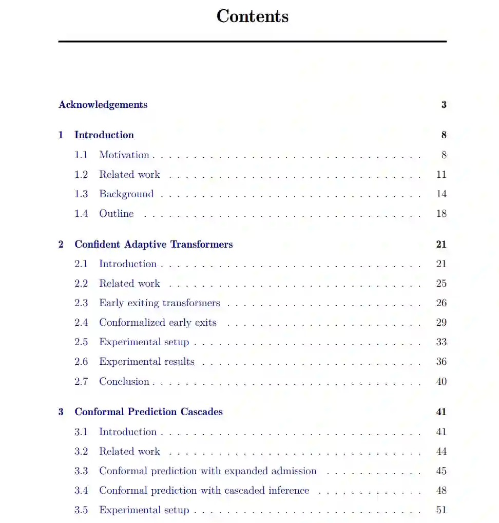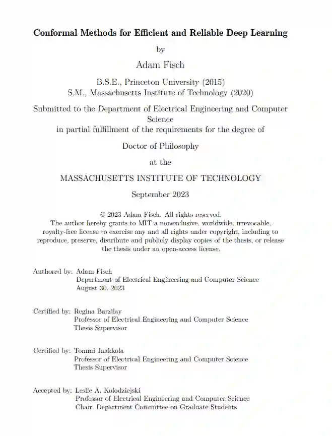 近年来,深度学习方法的稳步进展已导致在自然语言处理(Devlin et al., 2019; Brown et al., 2020; Schulman et al., 2023)、计算机视觉(He et al., 2015; Dosovitskiy et al., 2021)、计算化学(Jumper et al., 2021)以及预测医学(Yala et al., 2021; Mikhael et al., 2023)等领域广泛且有时是革命性的突破。这一进展的重要部分可以归因于规模:在前所未有的数据量上训练的大型基础模型改变了许多预测任务的建模和解决方式。同时,随着这些模型开始渗透到现实生活应用中,新的挑战开始出现。特别是,最优秀的现代模型的巨大计算占用使得运行成本高昂,甚至这些最好的模型在部署期间也不可避免地会犯下有害的错误。 在这篇论文中,我们基于共形预测开发了严格的统计工具,以帮助解决这些相互关联的挑战的多个方面。共形预测(Vovk et al., 2005)是一个日益受到机器学习社区欢迎的不确定性估计框架,因其有利的模型不可知、无分布、有限样本保证而受到青睐。我们在共形预测的基础上提出了几项基本的理论和实证进步,帮助用户安全地使用在真实世界中出现的困难但常见情况下部署的模型。同时,我们还展示了如何利用这些不确定性估计技术通过采取相反的方法来做出更高效的预测:对于简单的输入,采用不那么保守的方式,并选择使用更便宜、更简单的函数来做出预测——但仍确保对模型整体性能的任何降级都严格限制在一定范围内。