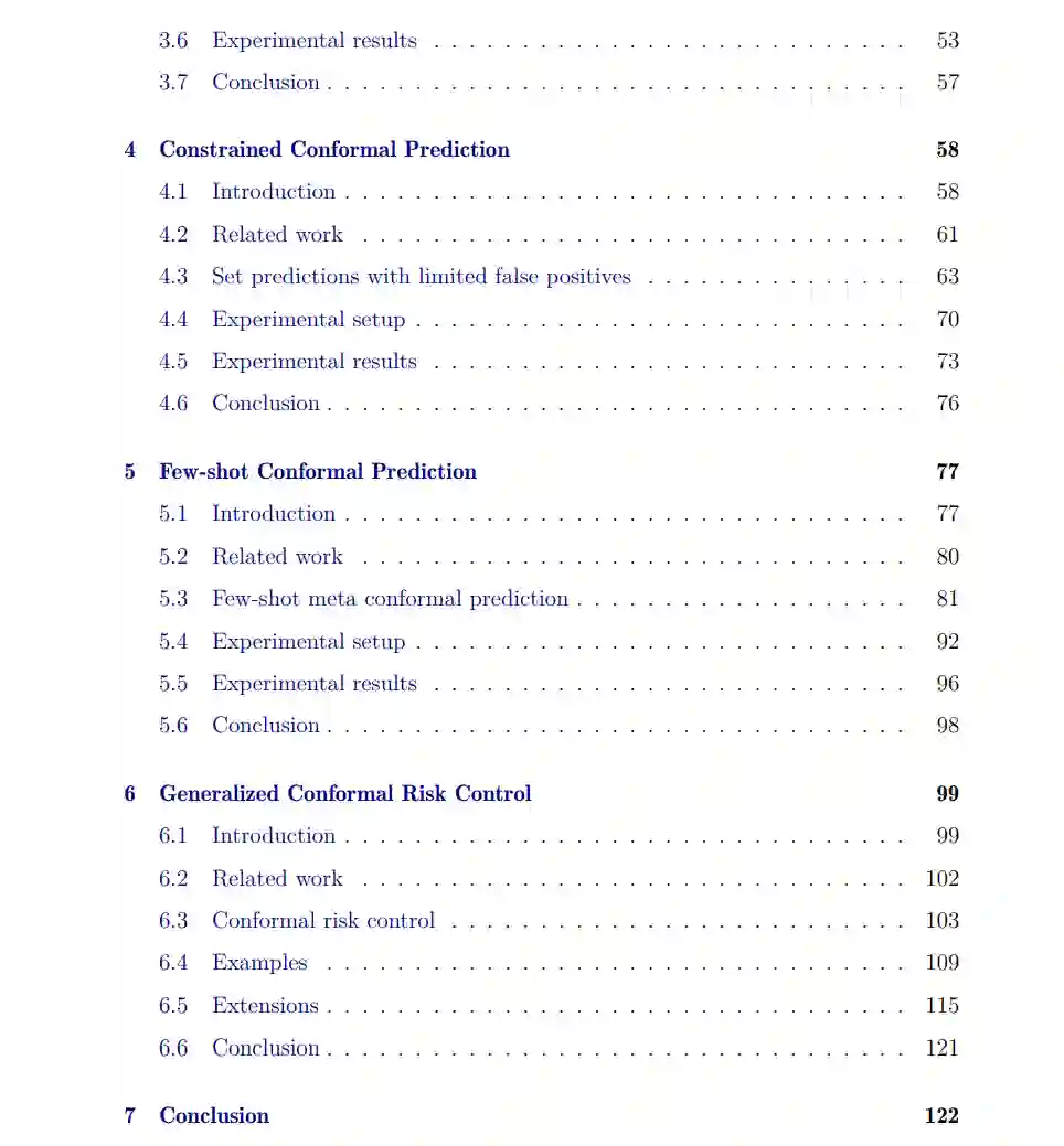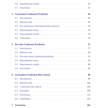 严谨的、通用目的的不确定性估计使模型更高效运行使它们能够在计算限制可能是限制因素的实际场景中更广泛地部署。然而,随着模型在现实世界中的更广泛部署,它们有可能犯下昂贵的错误。大多数现代系统输出单一预测——无论是实值、标签、自由形式生成的文本、结构化对象还是其他响应变量。然而,对于许多应用程序,用有意义的不确定性估计来丰富这种预测也至关重要(Amodei et al., 2016; Jiang et al., 2012, 2018; Rajpurkar et al.,2018)。在敏感的高风险应用中(如医学应用),显示置信度指标(实际反映模型是否可能正确或错误)与获得高准确性一样重要。不确定性估计也在用户无法轻易验证答案本身并必须盲目信任时相关。例如,大多数机器翻译系统用户无法知道特定翻译是否准确。可靠的不确定性估计可以缓解这些错误的一些负面后果。一个意识到自己不确定性的模型可以用来(1)告诉用户它有多确信某个概率,(2)说它确信正确答案是几个选项之一,或者(3)完全放弃预测,以转而依赖于不同的模型或人类。在这篇论文中,我们探索了这些方向的几个,并在共形预测的基础上建立了用于校准具有可证明性能保证的集合值不确定性估计的额外重要基础。具体而言,我们提出了对共形预测的扩展,这些扩展可以可证明地控制各种类型的风险,更适合于具有非唯一答案的大标签空间,适用于具有有限校准数据的少数镜头设置进行验证,以及在具有约束的实际问题中应用时通常更有用。