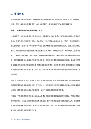 - 通过调研发现大模型落地应用的挑战,包括与企业战略一致性、业务收益设定和数据分析准确率。