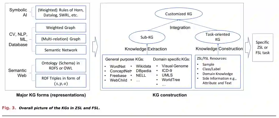 - 特定任务的KG构建: 对于ZSL或FSL任务,有时可以直接应用现有KG,但大多数情况下需要提取或构建适应特定任务的KG。
