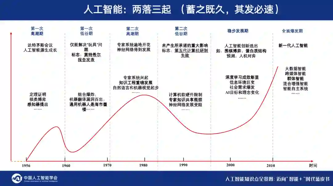 回顾这些发展历程中的主要挫折,不难发现,当与信息环境的变化趋势不符时,往往就会导致失败。促使人工智能变化的动力既有来自人工智能研究的内部驱动力,也有来自信息环境与社会目标的外部驱动力,两者都很重要,但相比之下,往往后者的动力更加强大。